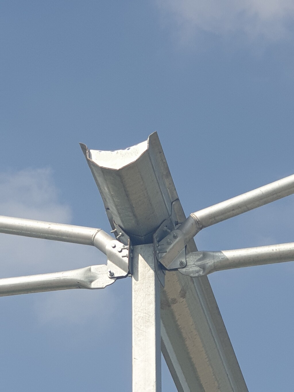 MONTAJ için getirilmiş klasik sera çelik bağlantı detayı.Daha şimdiden paslanma başlamış ve çok zayıf bağlantı elemanları.